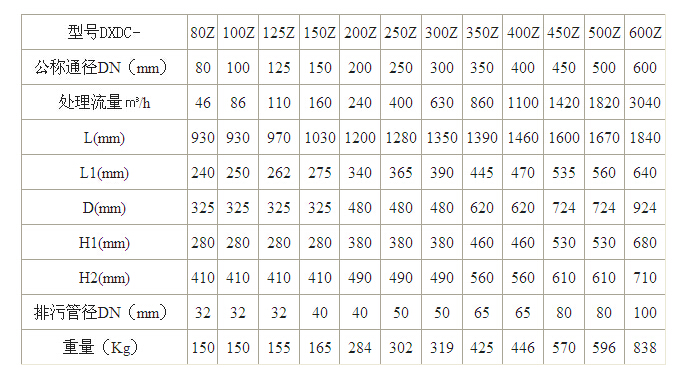 工作中,水進入設備后首先通過水處理機芯,在高頻交變電磁場的作用下,水分子載能被激活,能夠阻止水垢生成,并能破壞舊垢、殺菌滅藻。經處理后的水再流經過濾筒,其中的污物被濾筒截留下來,當污物積聚越來越多時,會堵塞濾網,使濾筒流通面積越來越小,導致水流經濾筒前后的壓力差值越來越大。當壓力值達到控制器允許值上限時,自控裝置輸出信號,電動導向閥、出水電動閥關閉,并打開電動蝶閥排污。污物排出后濾網流通面積恢復正常,水流經濾筒前后的壓力差降低,當壓力值達到控制器允許值下限時,自控裝置輸出相應信號,打開電動導向閥、出水閥、關閉排污電動蝶閥,排污結束。至此DXDC型全自動差壓過濾電子水處理儀完全自動的實現了水的處理和過濾功能。