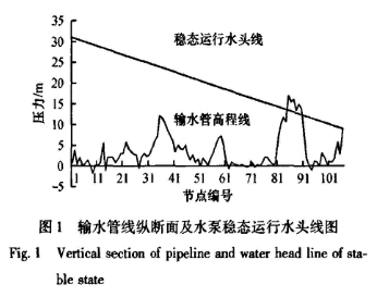 由圖1可知,系統正常運行時,節點85-節點90之間的管道處于負壓狀態,穩態條件下負壓的存在,不僅可能造成氣體析出和氣泡聚集,在水流脈動壓力作用下,負壓氣團(囊)處于運動和壓力振蕩之中,隨水流進入正壓區后迅速破裂,水流相互撞擊產生異常升壓對管道構成危害,而且發生水錘事故時更容易使水流汽化形成斷流彌合水錘。